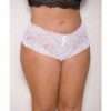 Lace and Mesh Chemise with Lightly Padded Underwire Cups, Garter and G-String Panty Lavender from Icollection lingerie. Bow detail in front. Color Lavender, Purple. Ladies plus size 1X. Sizes 16 and 18. Bust 40 inches to 44 inches. Waist 35 inches to 37.5 inches. Hips 43 inches to 46 inches.