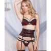 Cross dye lace and mesh halter chemise with lace soft cups, front and back criss cross insets, adjustable halter tie and g-string panty. Fabric 90% Polyester, 10% Spandex. Ladies size small. Sizes 2 to 6. Bust 32 inches to 34 inches. Waist 25 inches to 27 inches. Hips 34 inches to 36 inches.